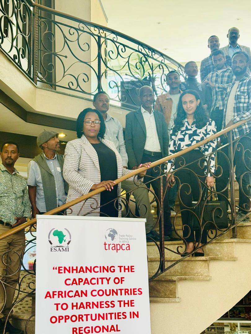ESAMI-trapca is proud to support the Ethiopia Technical team on WTO accession this week, June 3rd to 7th, 2024, with tools for trade policy analysis. The Ministry of Trade and Regional Integration highlighted Ethiopia’s ongoing efforts to join the WTO since January 2003, emphasising the numerous activities undertaken to advance the pre-accession negotiation process. Capacity building through training, awareness creation, and panel discussions have been key in expediting negotiations. To further strengthen the country’s trade policy capabilities, the Ministry of Trade and Regional Integration, in collaboration with the UK Government and Cowater International under the TAF2+ Programme, organised a capacity-building training program on Trade Policy Analysis which was implemented by ESAMI-trapca. This initiative aimed to equip Ethiopian officials with the necessary tools to assess the potential impacts of trade policies and agreements on the nation’s economy, industries, and trade relationships, including the African Continental Free Trade Area (AfCFTA).
